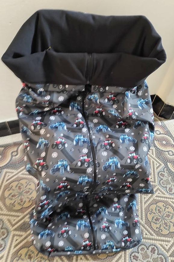 Fusak na invalidní vozík/kočárek. Fusak je vyroben z voděodpuzujícího a větru odolného PES materiálu, zateplen vatelínem. Podšívka je z hřejivého minky.