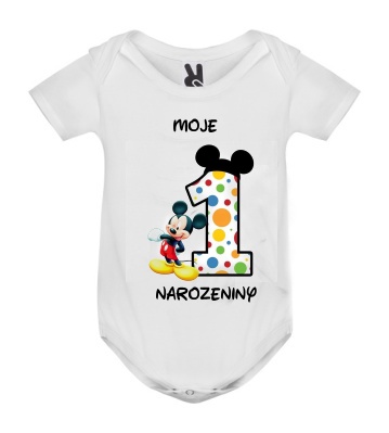 Dětské body s potiskem jedničky - moje první narozeniny a Myšáka se jménem