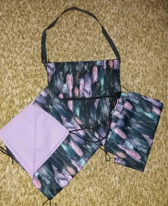 Set obsahuje: nepadací deku 75x65cm, tašku na kočárek40x35cm a sluneční clonu70x50x70cm.