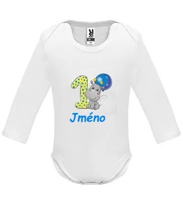 Kojenecké body s potiskem první narozeniny Hrošík dl. rukáv II