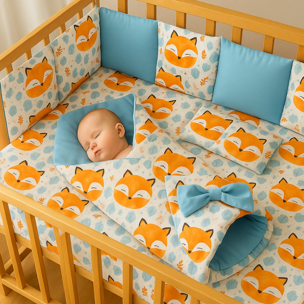 🦊 Povlečení na peřinku a polštářek – dokonale sladěné s celým setem.