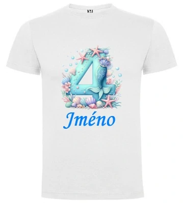 Dětské bavlněné tričko s potiskem Moře k 4. narozeninám. Veselý motiv, příjemný materiál, originální dárek pro malé oslavenkyně i oslavence.