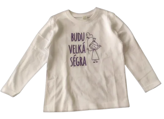 Představte si moment, kdy vaše rodina čeká přírůstek a vy hledáte způsob, jak tuto radostnou novinu sdílet se světem. Bavlněné tričko s dlouhým rukávem s potiskem "Budu velká ségra" je nejen krásným způsobem, jak oznámit příchod nového člena rodiny, ale také úžasným dárkem pro vaši milovanou dceru, která se stane velkou sestrou. Vytvořené s láskou a pečlivostí, toto tričko je symbolem začínajícího dobrodružství a nezastupitelné role, kterou bude vaše dítě hrát jako starší sourozenec.