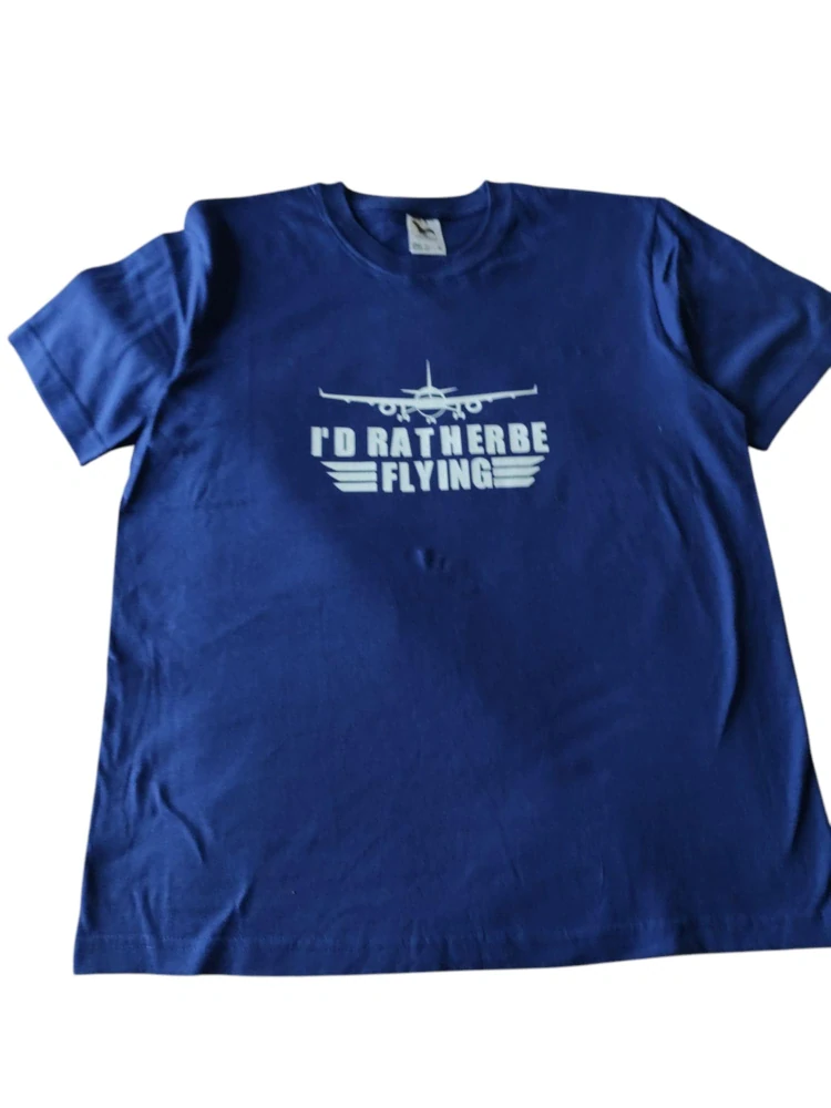Pro všechny milovníky létání! Toto stylové tričko s potiskem letadla a nápisem "I’d Rather  Flying" je ideální volbou pro piloty, letecké nadšence i cestovatele, kteří mají raději nebe než pevnou zem.