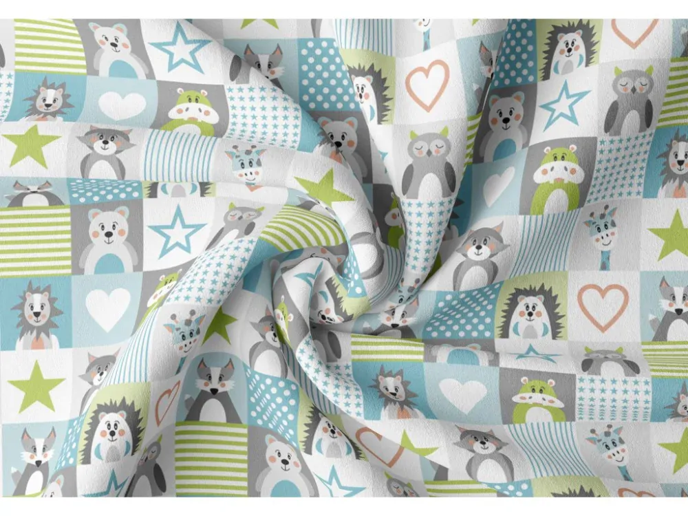 Dětské zatemňující závěsy jsou potištěny pouze z lícové strany, rub je bílošedý.