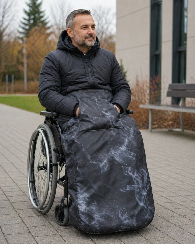 Zimní Nánožník na invalidní kočárek/vozík černá kouř s kapsou